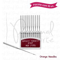 ou em até 3X sem juros de R$ 8,50 - Agulha 20 Máquina Reta Transporte Duplo - ORANGE DP X 17LançamentoR$ 24,74 no pixR$ 25,50 em 1x no cartão de crédito